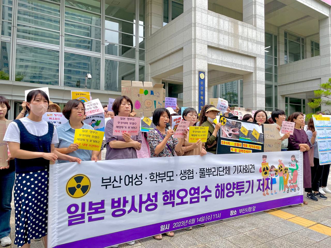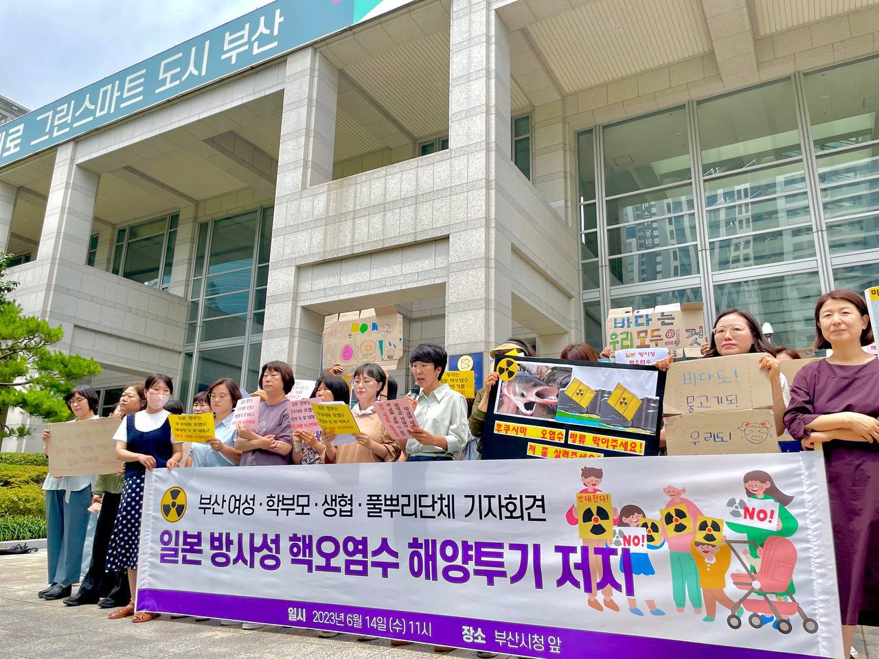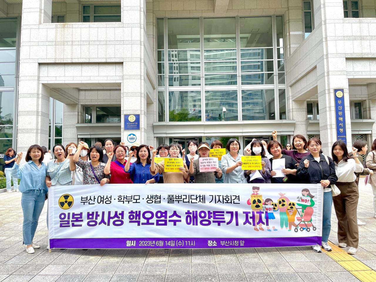 부산여성회는 6월14일 오전, 부산시청앞에서 부산지역 여성, 학부모, 생협, 풀뿌리 단체들과 함께 일본 방사성 핵오염수 해양투기 저지 기자회견을 진행하였습니다.