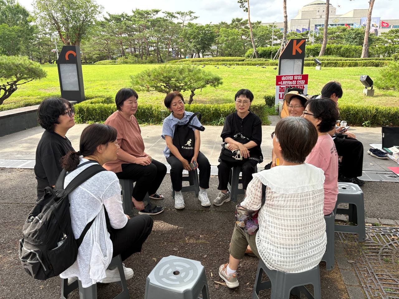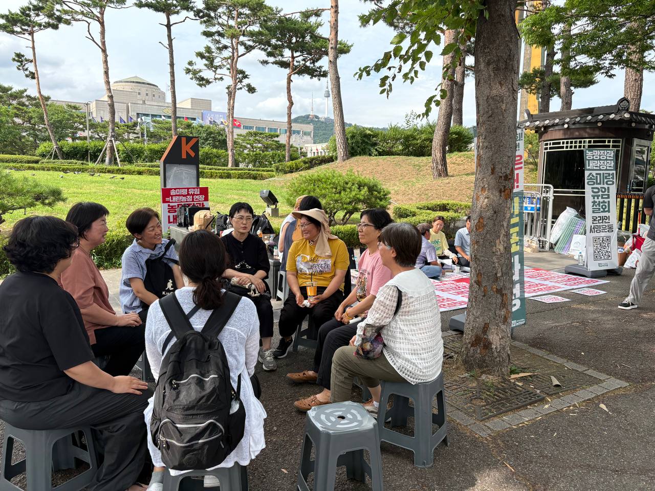 가림막도 없이 노상 농성중인 "송미령 농림장관 유임철회 농성장" 지지방문을 다녀왔습니다.