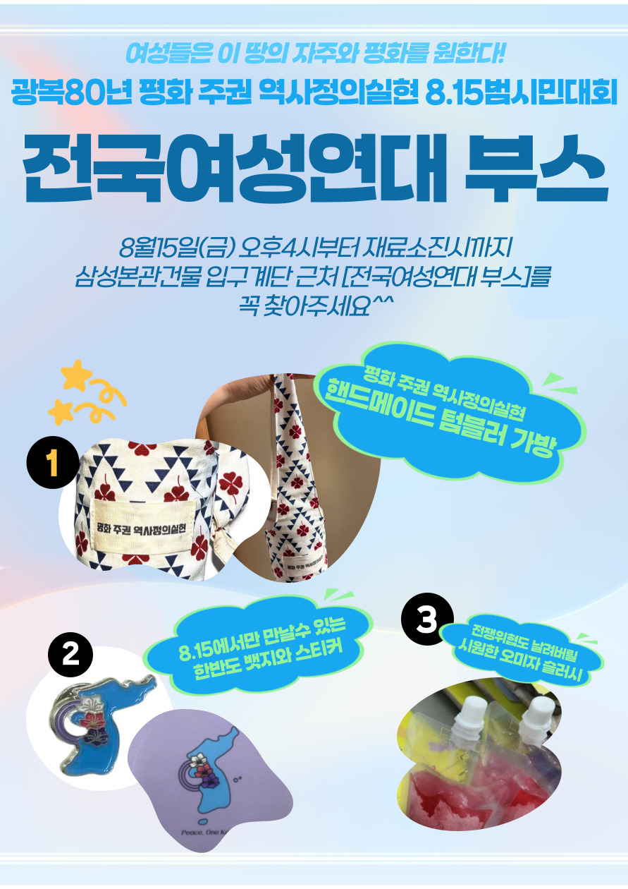8.15범시민대회 행사장 주변 참여부스에 전국여성연대도 함께 합니다.