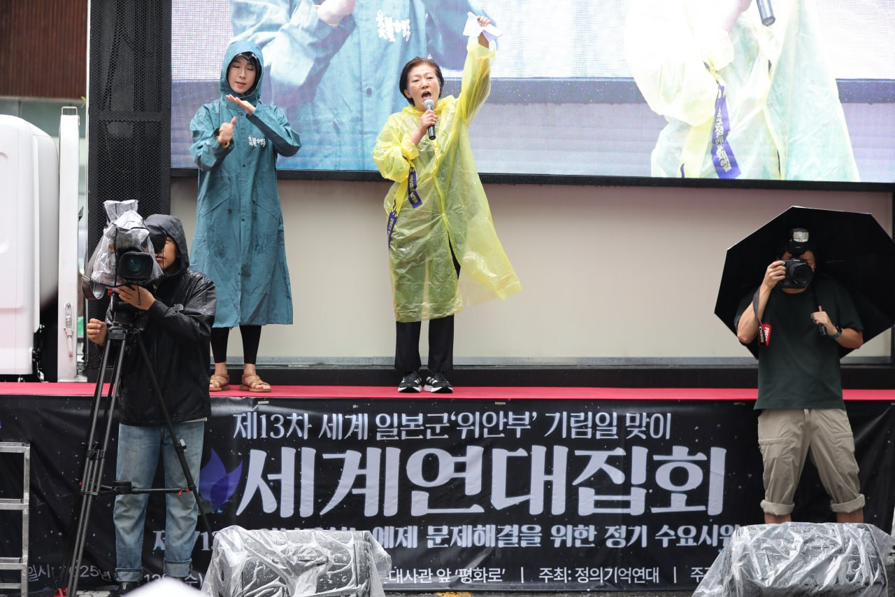 장대비가 쏟아지는 가운데 제1713차 수요시위이자 제13차 세계 일본군‘위안부’ 기림일 맞이 세계연대집회에 참석했습니다.