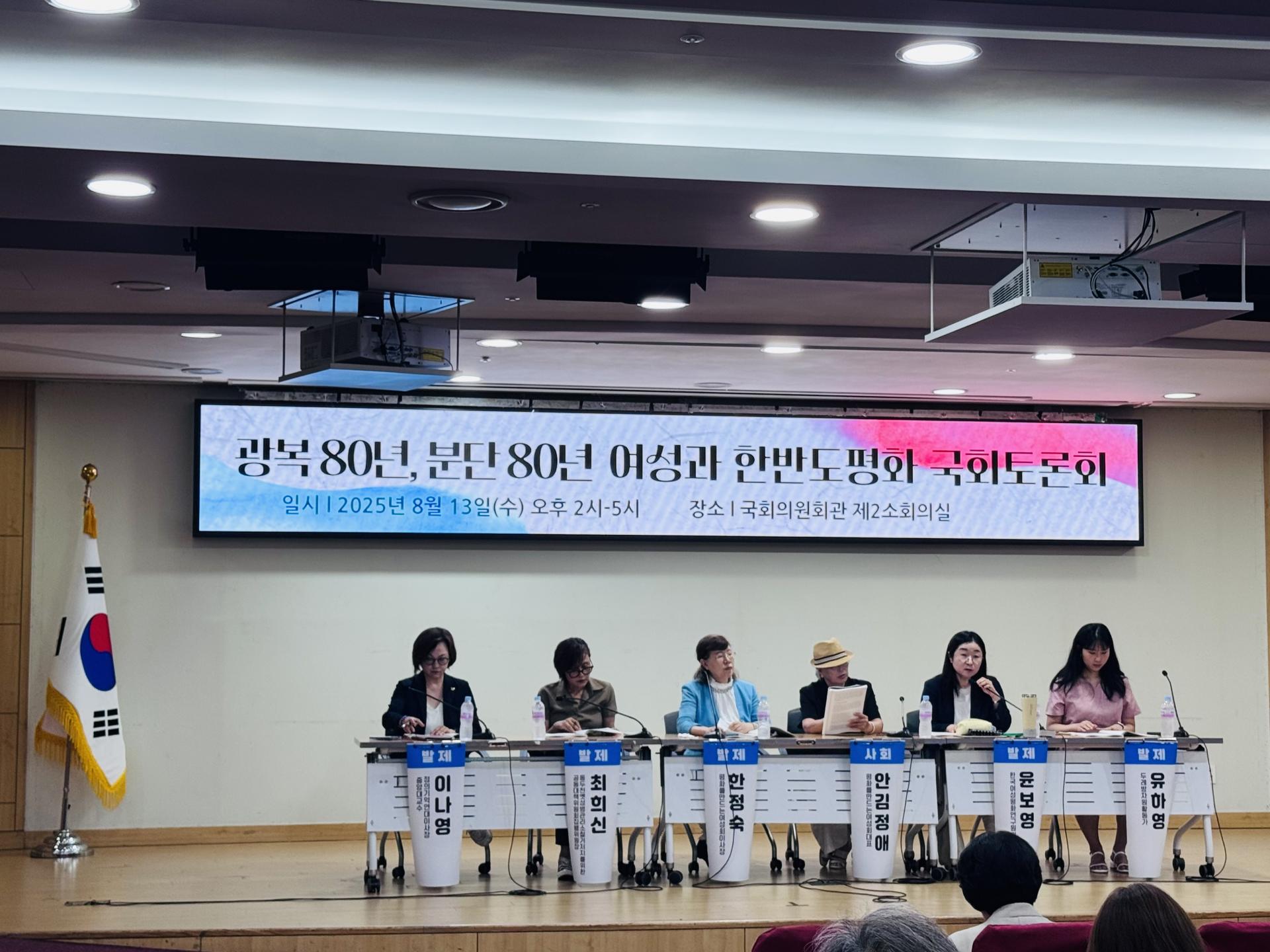 8월13일 오후2시, 광복80년, 분단80년! 여성과 한반도평화 국회토론회가 진행되었습니다.