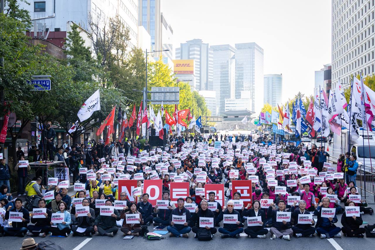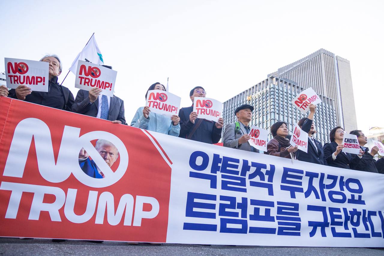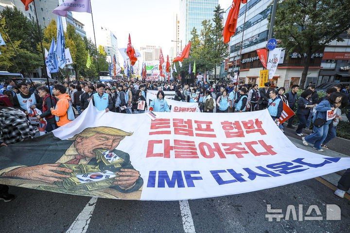 트럼프 방한 앞두고 'NO 트럼프' 행진..."대미투자 전면 재검토"
