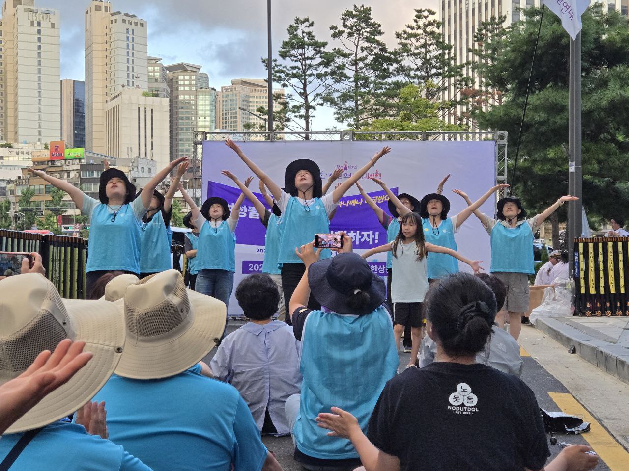 정의연 피휴파팀의 날개 율동공연과 당진,경기,서울,세종,부산의 지역활동보고에 이어 경남에서 온 청년노래패 '통일호 김선장'의 자작곡 노래 공연, 부산여성회 율동공연으로 진행되어고, 힘찬 구호제창으로 마무리하였습니다.